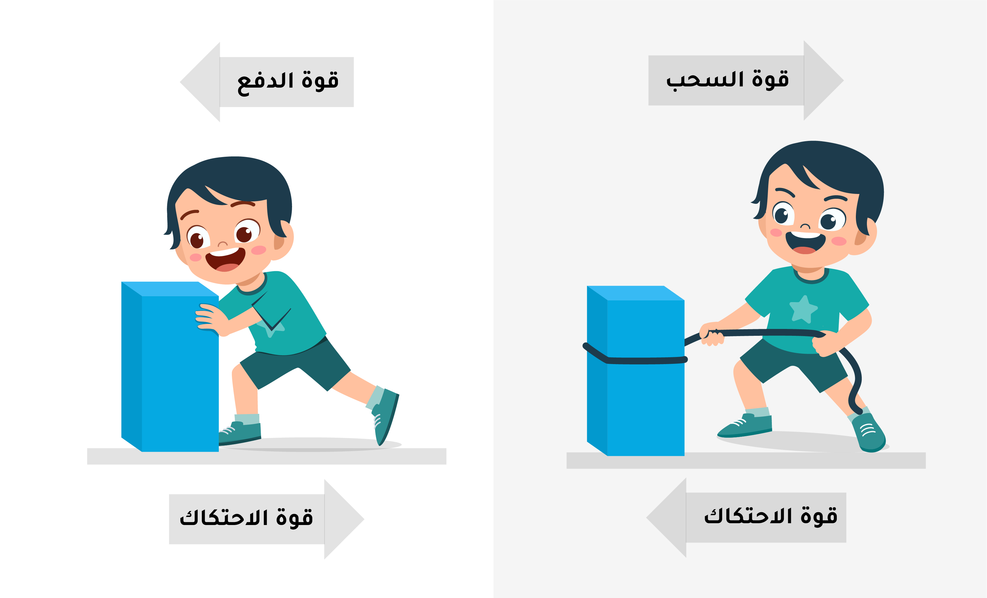 ![]() | الاحتكاكوهو قوة تنشأ بين سطحي جسمي متلامسين ويكون اتجاهها دائما معاكس لاتجاه حركة الجسم فتقلل من سرعته |