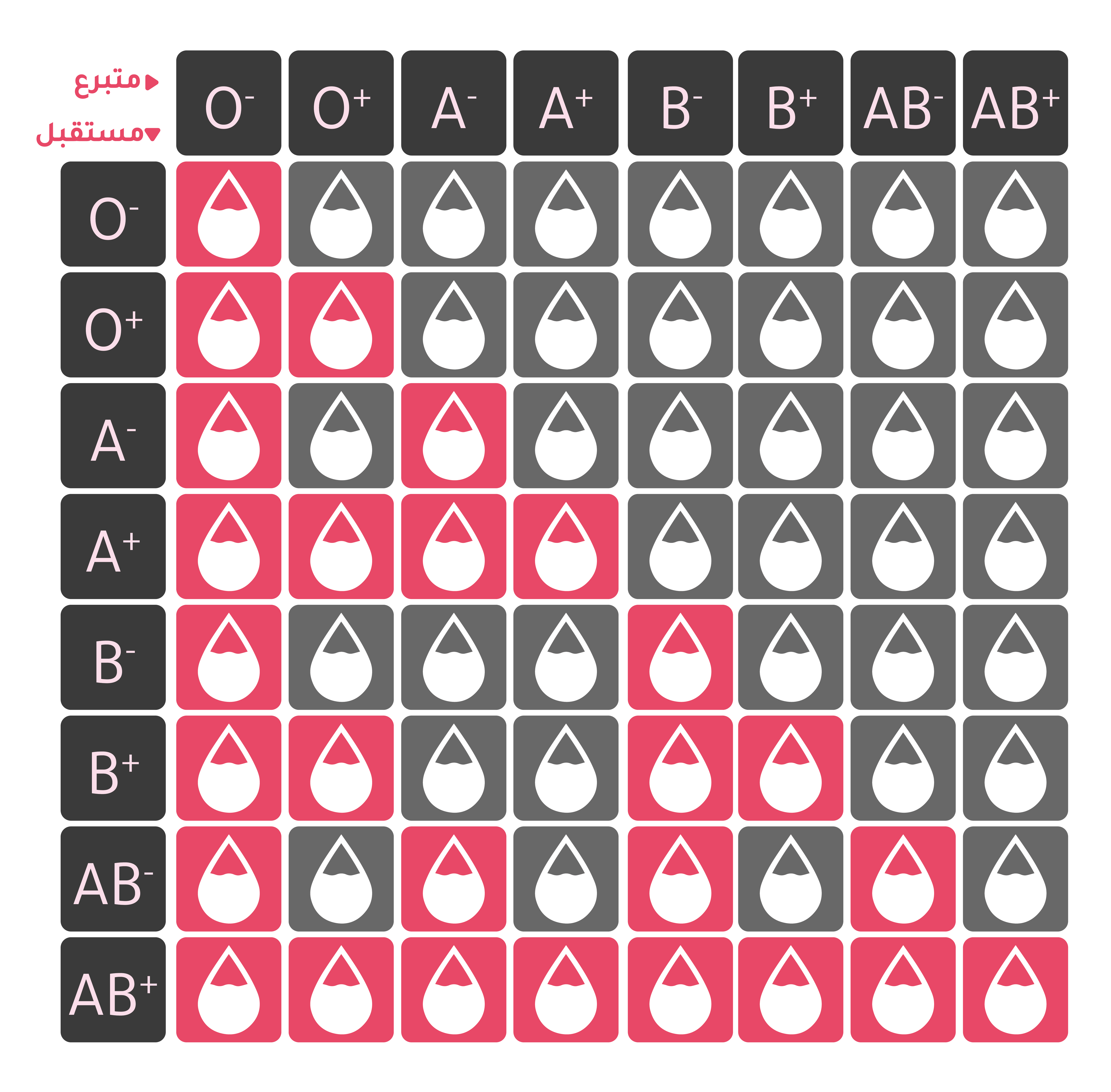 مصدر 3.1: أنواع فصائل الدم التي تتوافق مع بعضها أثناء عملية التبرع