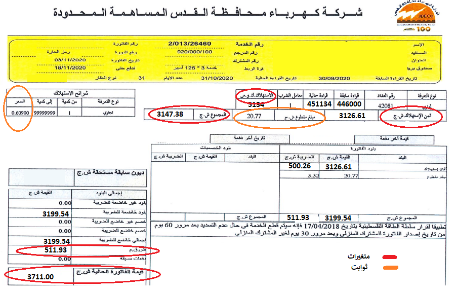 - سعر الاستهلاك (والذي يختلف باختلاف نوع التعرفة).