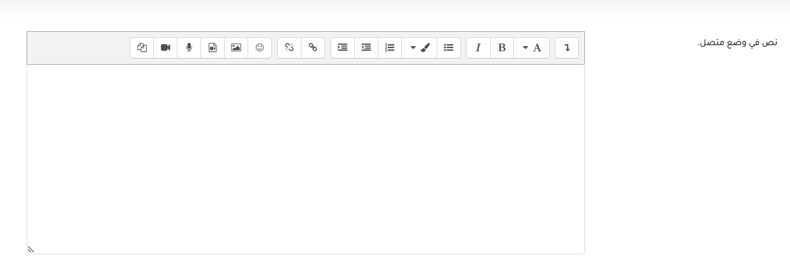 عندها ستفتح أمامك نافذه لإدخال وصف للمهمة أو مقدمة لها "نص في وضع متصل". حيث يمكنك الكتابة مباشرة داخل المربع الموضح بالصورة الآتية وإدخال النص الذي تريده لوصف المهمة.