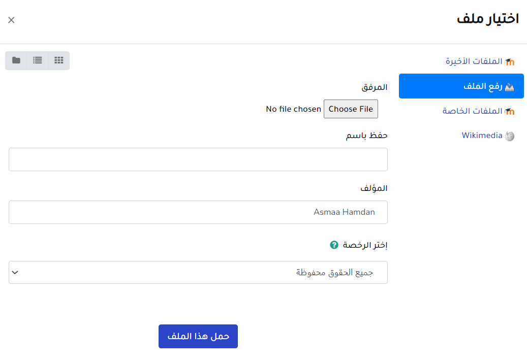 ← لرفع ومشاركة الملف أنقر على Choose file، ثم توجه إلى مكان تخزين الملف على جهازك .