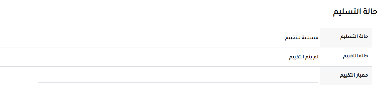← بعد حفظ التغييرات انتظر قليلا لتتأكد من إتمام عملية التسليم بشكل صحيح حيث يجب أن تتغير حالة التسليم ل "مسلم للتقييم" ( انظر الصورة الآتية)