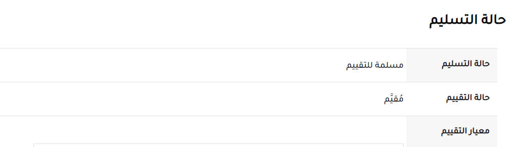 ← بعد أن يقوم المعلم/ الميسر بتقييم المهمة التي شاركتها ستتغير حالة التقييم ل "مقيم"
